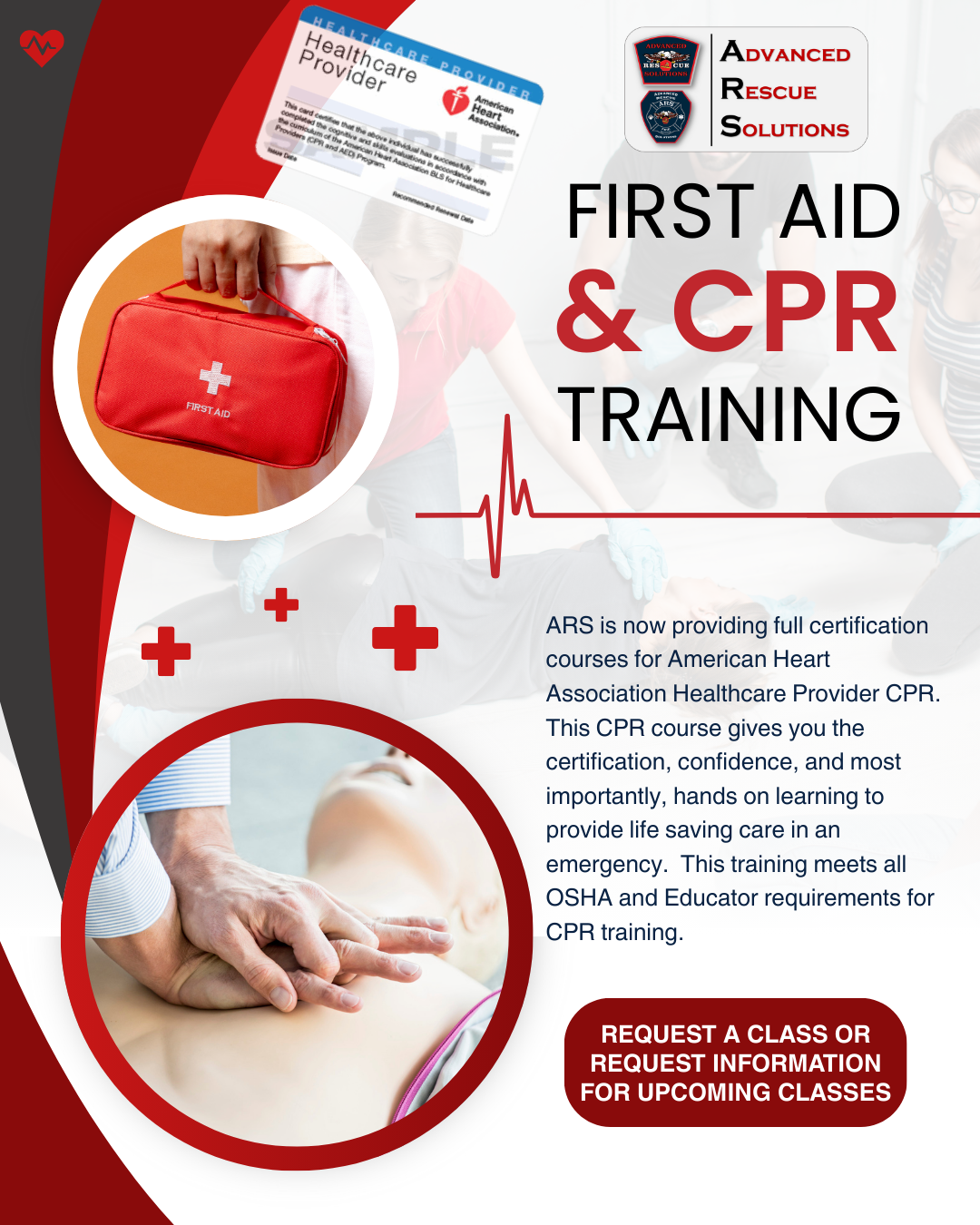 The ARS CPR course provides American Heart Association certification for First Aid and CPR that meets all of the requirements set forth in OSHA and state requirements for educators, as well as all levels of healthcare workers.